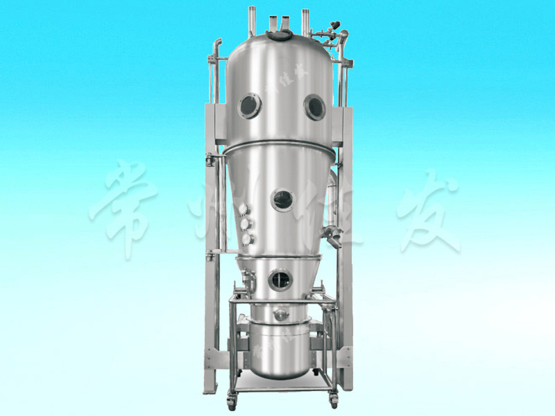 旋流流化床制粒包衣機(jī)是將流化床做成葉片式結(jié)構(gòu)的流化床,并使葉片呈一定斜度,讓氣流從葉片的間隙通過,形成環(huán)流狀的強(qiáng)大氣流,使物料呈旋渦狀似的有序運(yùn)動(dòng),同時(shí)安裝在側(cè)壁的氣動(dòng)噴嘴將粘合劑或包衣液噴入呈旋渦狀的物料層,從而將粉體制成顆?;颢@得連續(xù)均勻的衣膜。